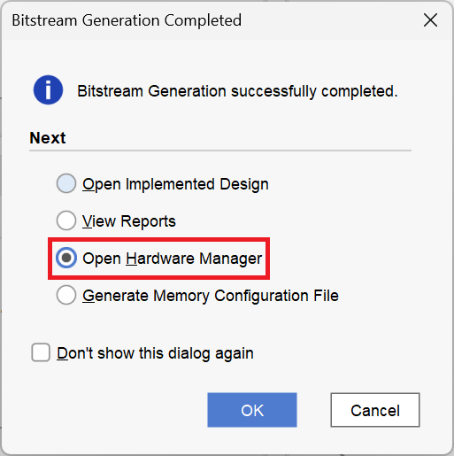 「Open Hardware Manager」を選択し、「OK」をクリックする。